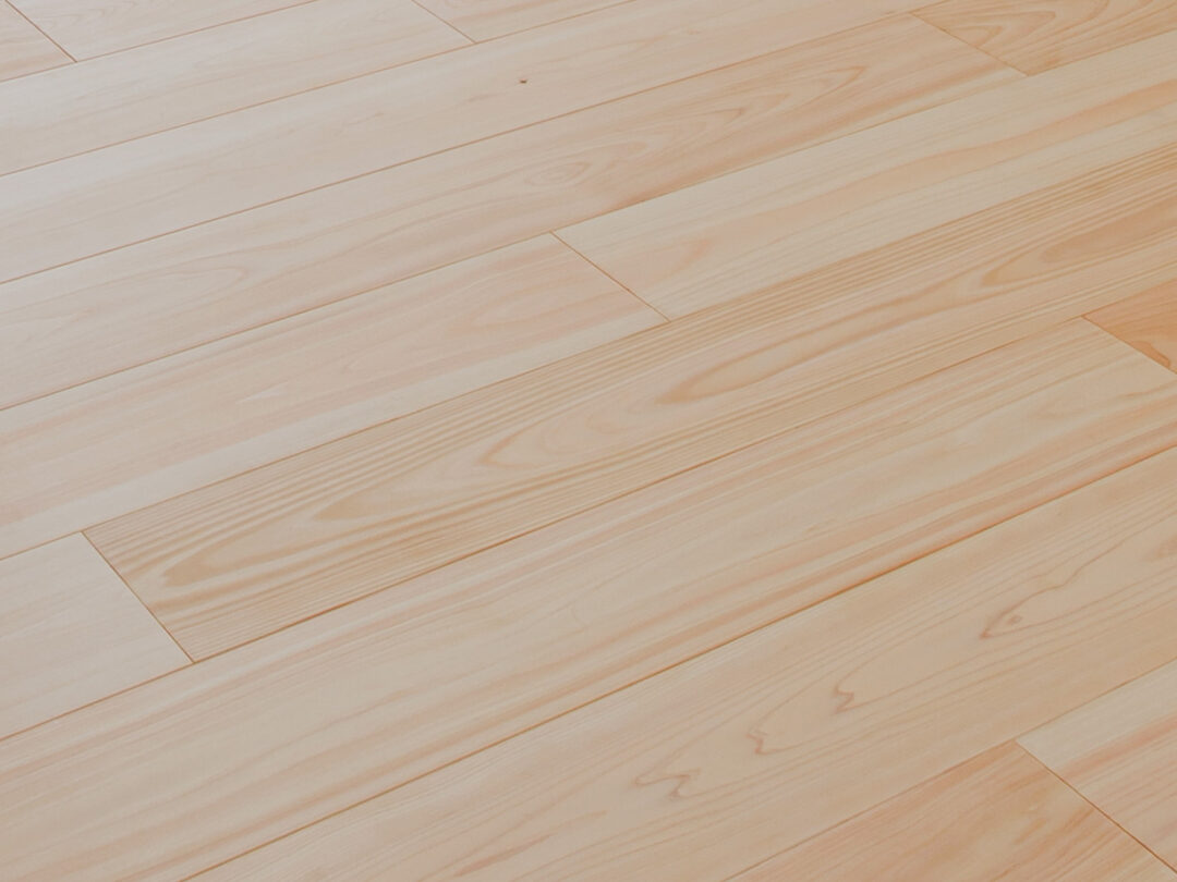 やや密度が高く木の繊維が均一に詰まっているため、杉と比べると凹みや擦り傷がつきにくい木材です。