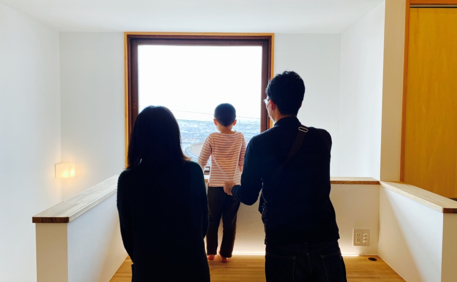 2階リビングにすることでプライバシーも守りつつ大空間と耐震性も両立します。素晴らしいロケーションも2階リビングならではです。