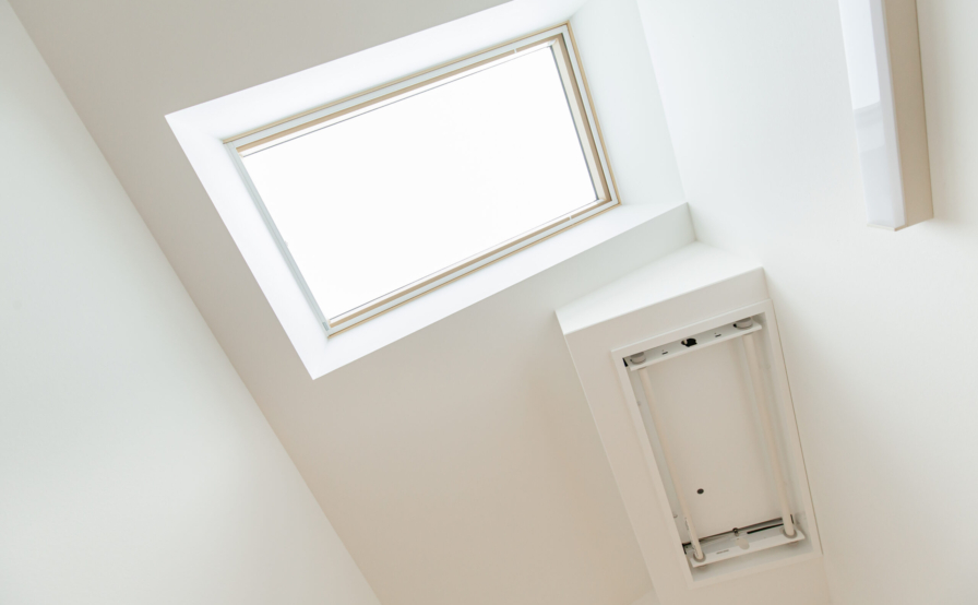 毎日がいそがしい共働きの子育て世代ゆえに家事動線にこだわったプラン計画。思い切ってベランダは設けず、洗濯物は天窓の設けられたランドリースペースにて。洗濯して、干して、畳んで、各自のタンスまでランドリースペースで完結できます。