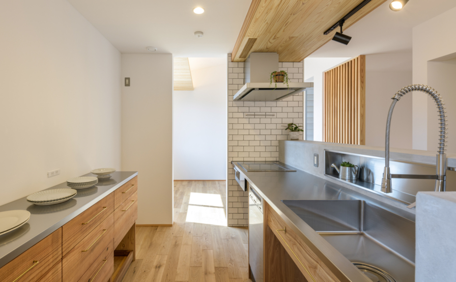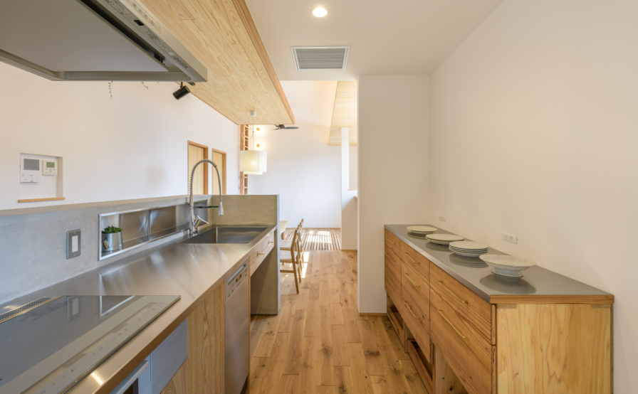 設計がスタートしたのは、そのあとすぐ。半年ほどの設計期間を頂いて着工をするも、ウッドショックのあおりで床の下地に使う合板が入手しづらい時期という事もあり必要数の確保に時間を要したり、外壁に選ばれていた金属系のサイディングも出荷停止になったりと、何かとトラブルに見舞われましたが、無事に竣工しお引き渡しができました。