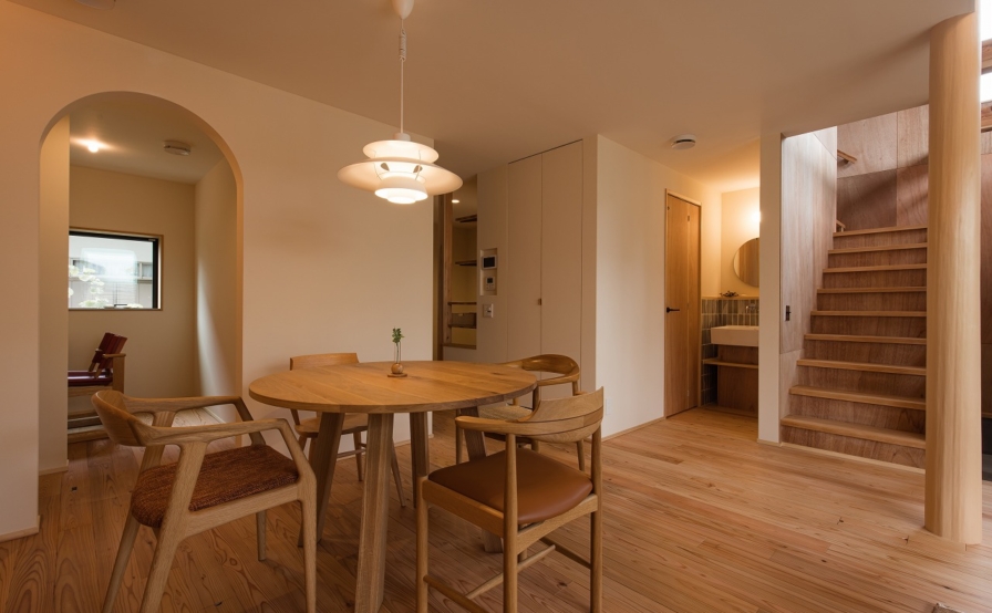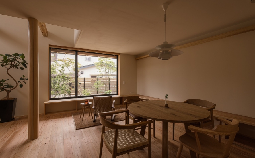庭と家をつなぐ縁側。お子さんたちが庭で遊ぶのを縁側や食卓から眺めるご夫婦、その光景がいつしかご家族の原風景となればと思います。