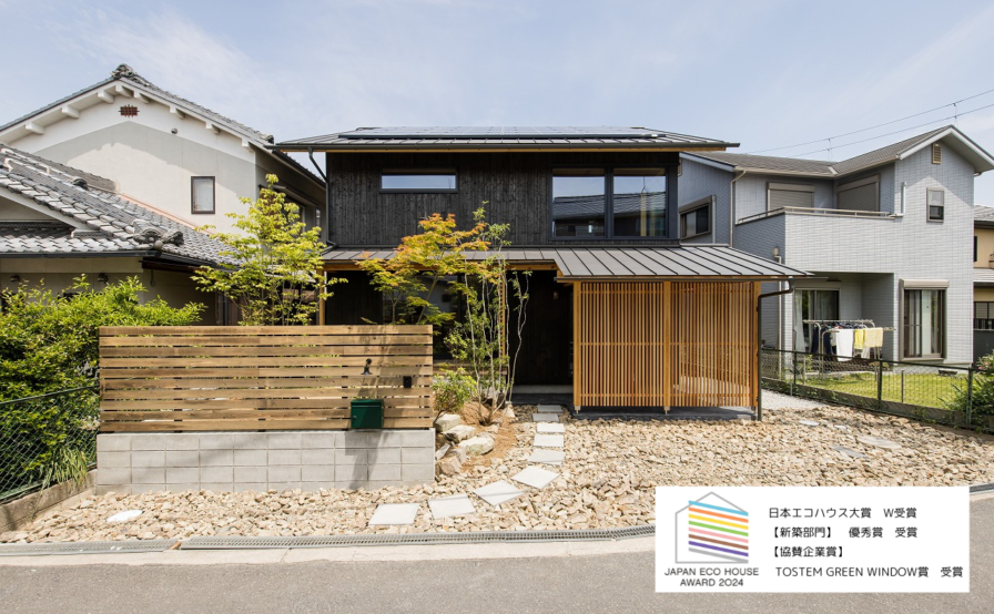 第8回 日本エコハウス大賞【新築部門】 優秀賞、【協賛企業賞】 TOSTEM GREEN WINDOW賞を受賞した様子です